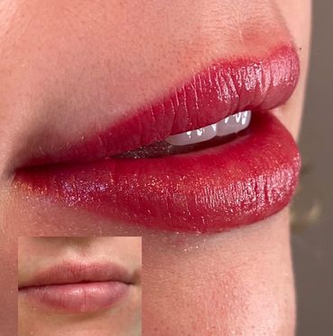 A Lip blush tattoo enhances and defines the color and definition of your lips. As we age, we loose the collagen, color and fullness of our lips. This specialized procedure will make your lips appear more rounded and youthful.